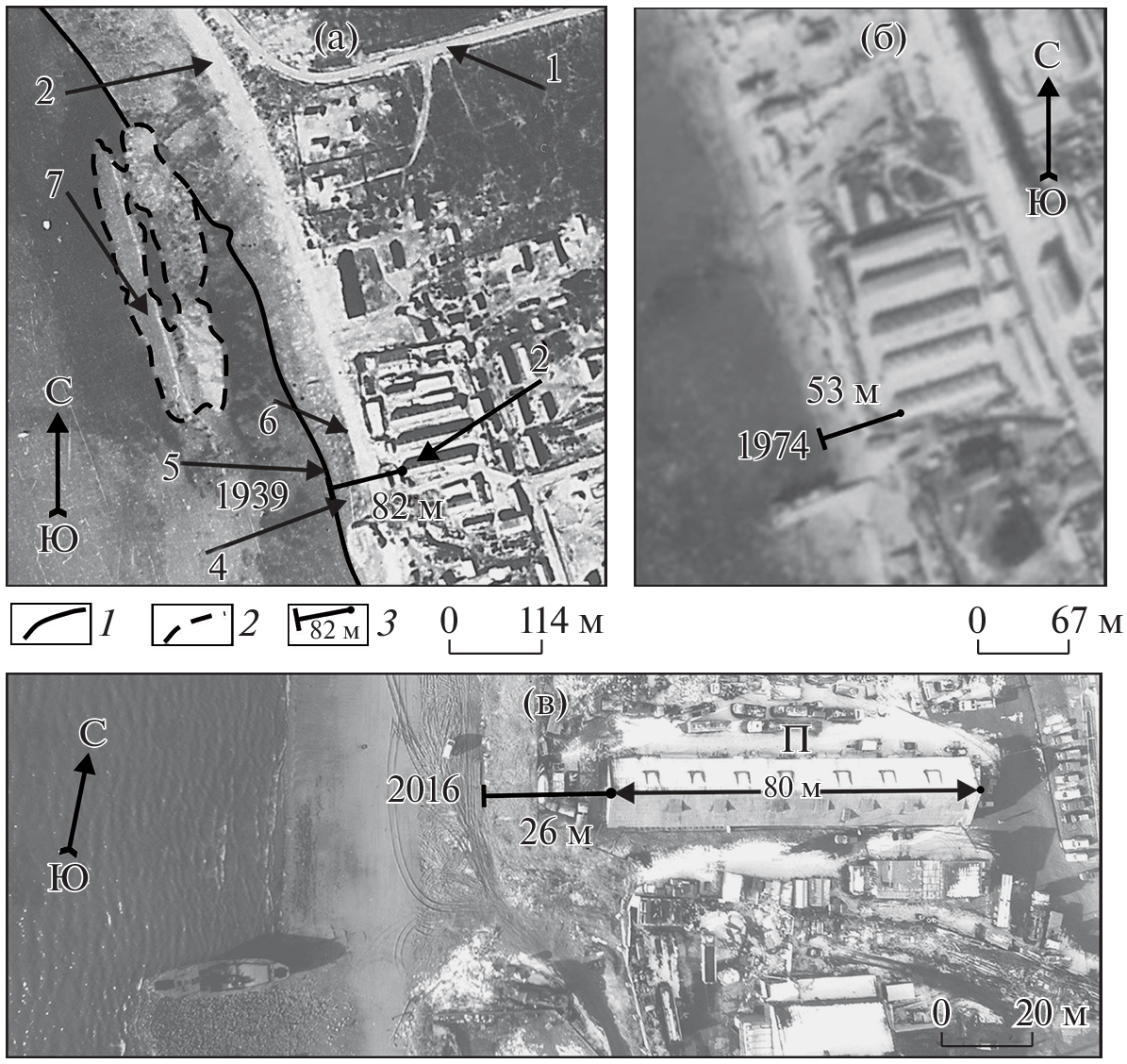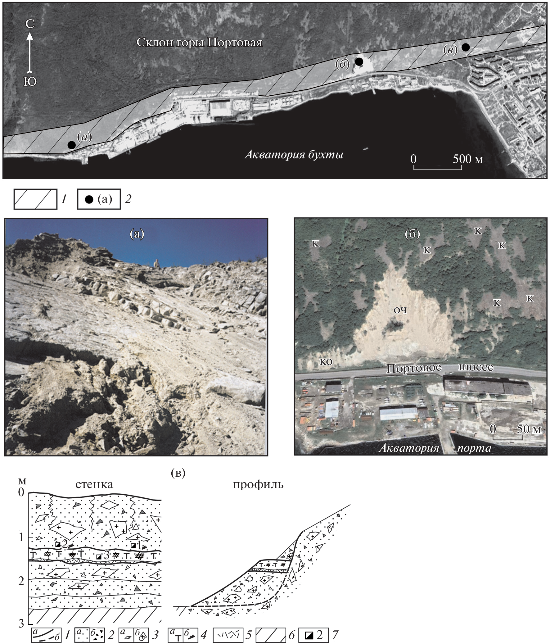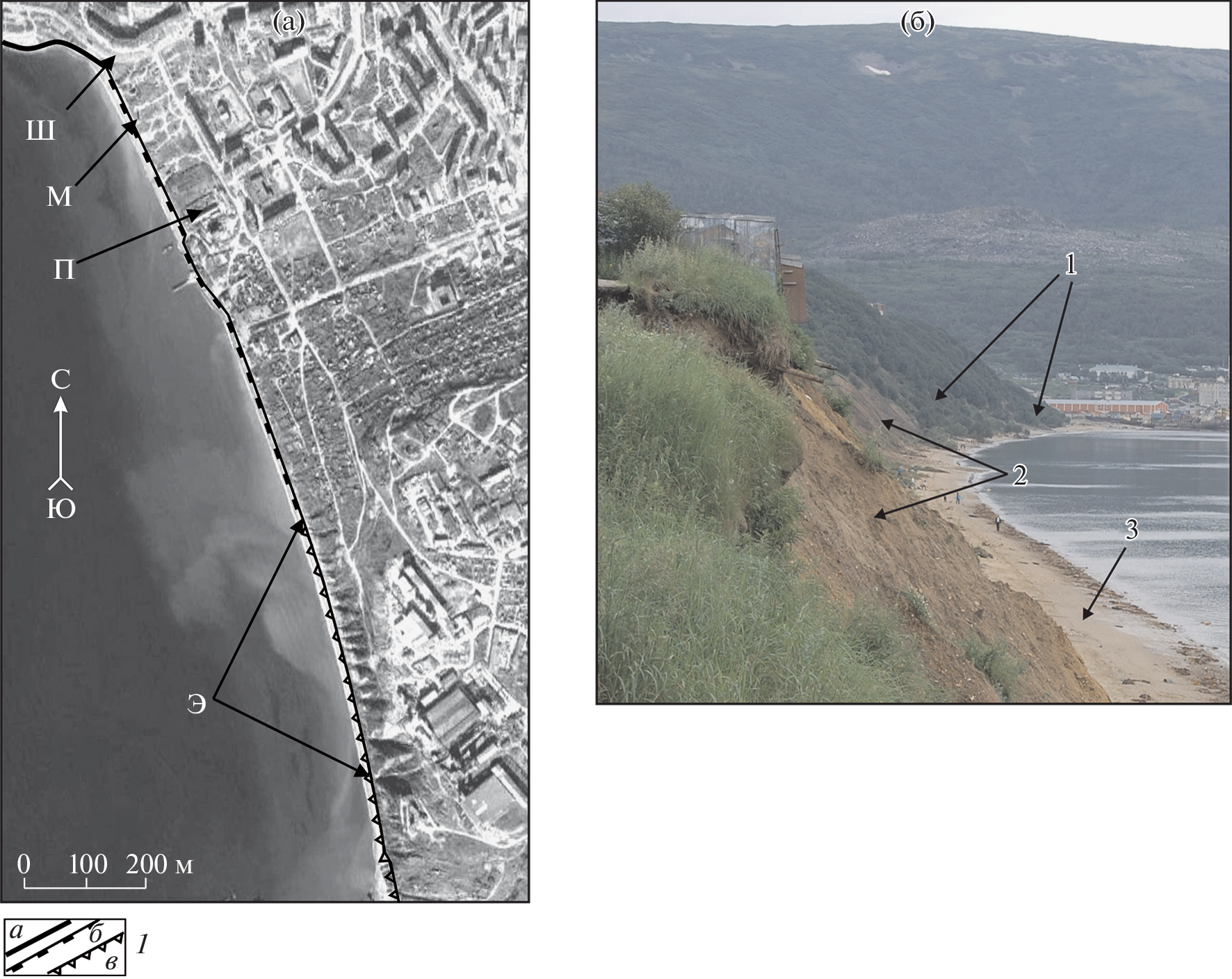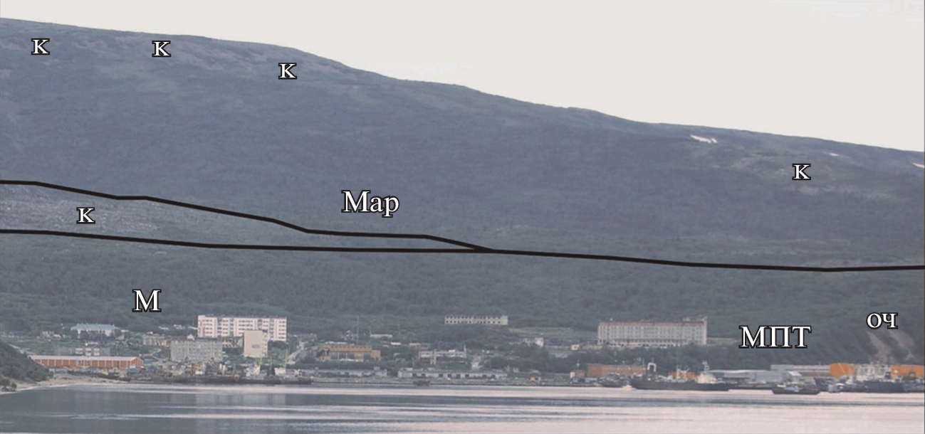 The results of the morphodynamics analysis of denudation slopes and the coastal zone of Nagaev Bay, as well as estimated distances and rate of the eastern coastline retreat for the period from 1939 to 2016 are presented. The main methods of the work are morphographic and morphometric using aerial photographs of different years of flight, modern satellite images and snapshots. It is established that the morphostructure of the southern and northern shores of Nagaev Bay is determined by active faults striking in sub-latitudinal direction and framing the bay. The polygenetic mountain slopes adjacent to the coastline differ in length and angle of inclination. The slopes are covered with active kurums (stone runs) that slide towards the bay. In the lower part of the northern slope there is a zone of the Nagaevsky active fault, which causes a high dynamics of slope processes with a predominance of active kurums and landslides. The northern slope has been cut by a road built during the construction of the seaport and the Port Highway. As a result, widespread technogenically triggered landslides, rock falls and scree are often disrupting traffic on the highway. Thus, the territory of the commercial seaport and the Port Highway are at a risk of a sudden movement of large-volume of detrital material down the mountain slope. The eastern coastal zone is formed by a coastal ledge composed of unconsolidated deposits of the Nagaevskaya strata, an incomplete profile beach, and a littoral, the width of which reaches 200–250 m at low tide. The marine boundary of the zone runs at a distance of about 500 m from the coastal ledge. The eastern shore is actively moving towards the city of Magadan. During the period from 1939 to 2016, it shifted by 56 m with an average speed of 0.73 m/year. During the first stage (1939–1974), it advanced 29.0 m with an average speed of about 0.83 m/year. During the second stage (1974–2016), the coast moved for about 27.0 m with an average speed of 0.64 m/year. In recent years, large-scale work has been carried out on the eastern shore of Nagayev Bay in order to reinforce the shore and protect it from abrasion by erecting a breakwater wall. The engineering structure results in breaking of the established dynamic balance of coastal processes, which will eventually lead to the complete disappearance of the beach, and on the remaining unprotected sections of the coast – to increased abrasion and faster movement of the coastline towards the city.