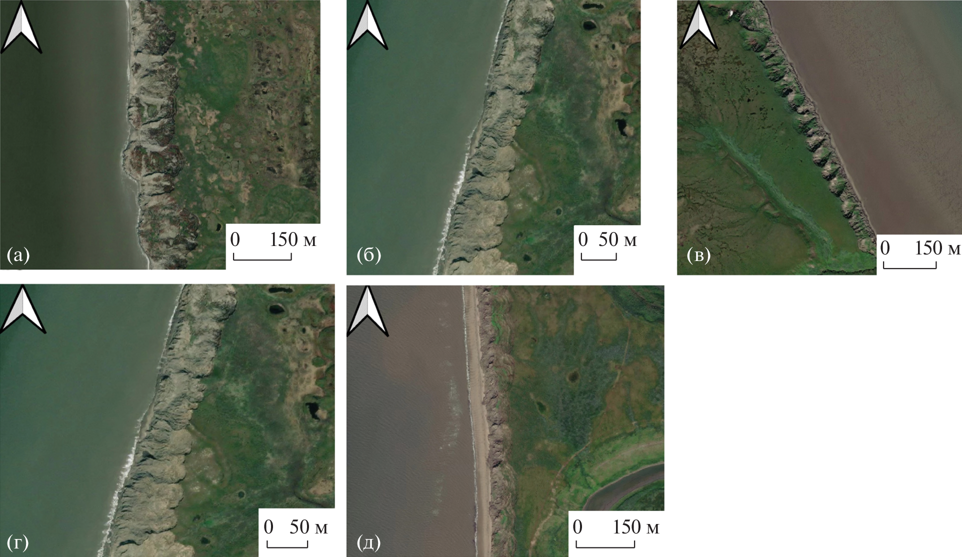 - Leibman M.O., Kizyakov A.I., Zhdanova E.Yu. et al. (2021). Retreat of the coast of the Yugorsky Peninsula as a result of thermal denudation for 2010–2020 and 2001–2010. Sovremennye issledovaniya transformatsii kriosfery i voprosy geotekhnicheskoi bezopasnosti sooruzhenii v Arktike. Salekhard: Pravitel’stvo Yamalo-Nenetskogo avtonomnogo okruga (Publ.). P. 246–249. https://doi.org/10.7868/9785604610848066. (in Russ.)