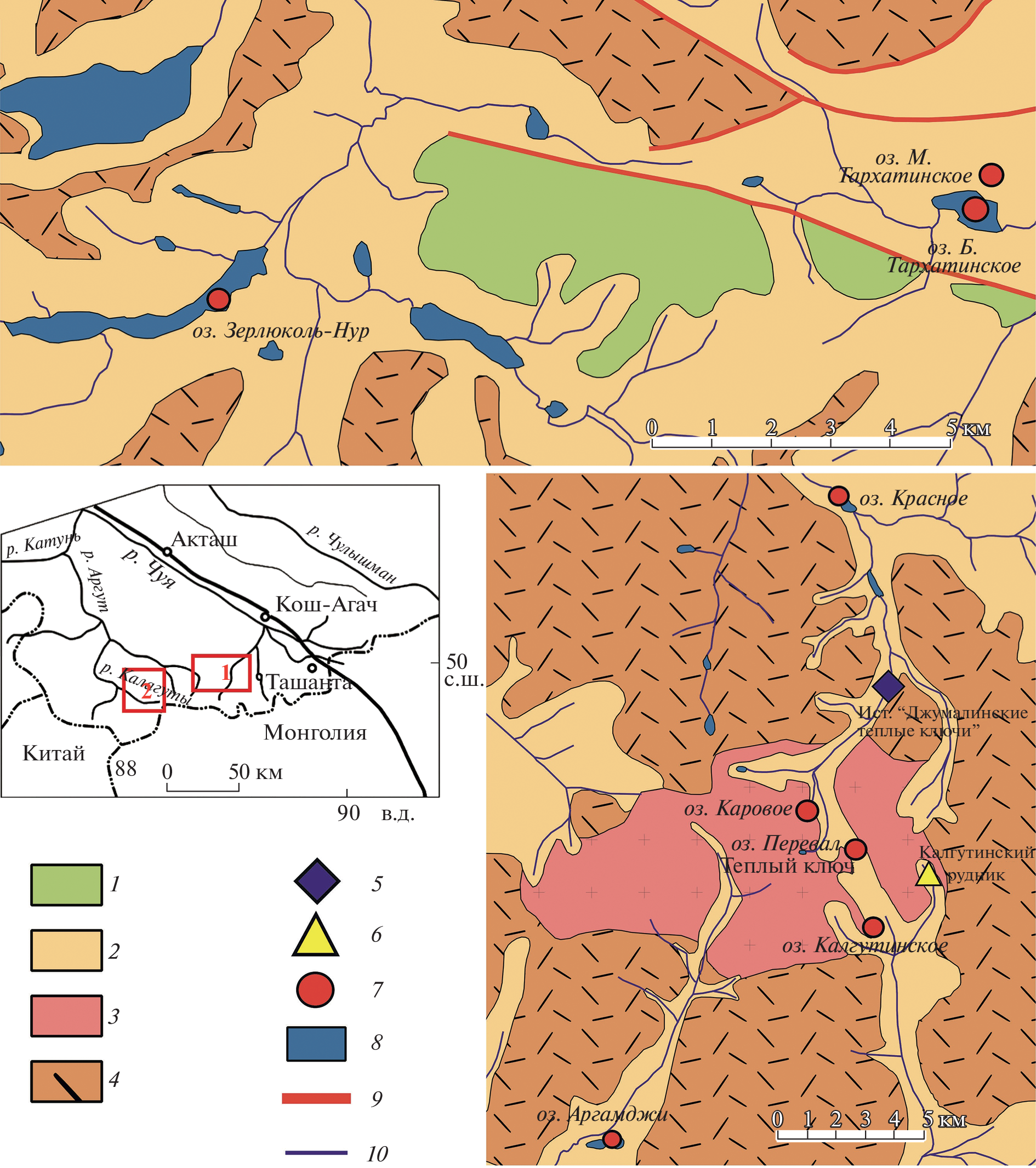 - Dolgushin S.S. (Ed.). (2009). Geologicheskaya karta: M-45-XXIII, XXIX. Geologicheskaya karta Rossiiskoi Federa-tsii. Izdanie vtoroe. Seriya Gorno-Altaiskaya m-ba 1:200 000 (Geological map: M-45-XXIII, XXIX. Geological map of the Russian Federation. Second edition. Gorno-Altai series, scale 1 200 000). Moscow: Rosnedra (Publ.). 1 p. (in Russ.)