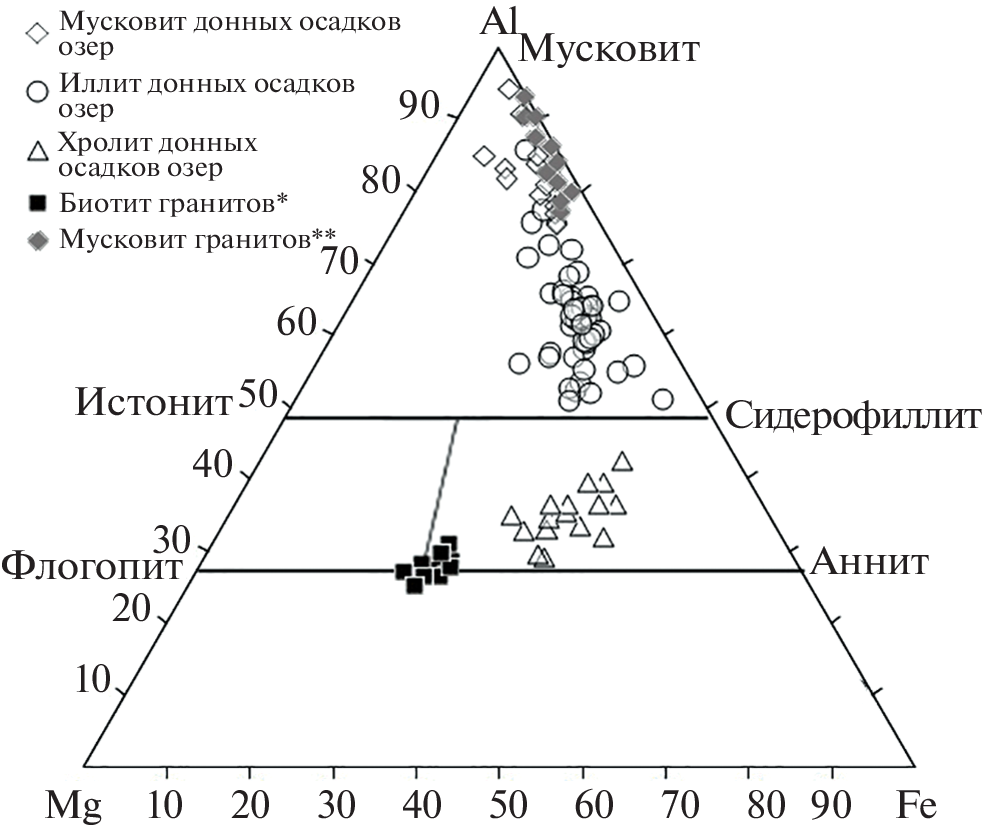 Numerous modern lakes appeared in the intermountain basins and on the high-elevation plateaus of Altai within the immediate distribution of glaciation in the Neo-Pleistocene. There is little known about the geochemical processes of autigenic mineral formation in lake systems under conditions of nival sedimentogenesis. The study of cores of bottom sediments of 8 high-altitude lakes of Altai showed that the waters of the lakes are fresh bicarbonate with variations in the cationic composition of Ca–Na. The bottom sediments of lakes are characterized by different ratios of mineral detrital material, autigenic minerals (calcite, gypsum, pyrite, illite) and mortmass of plant residues. In the bottom sediments of lakes located within the same basin (Bertek or Tarkhatinskaya), the absolute concentrations of elements differ within one standard deviation, with the exception of significant variations in the contents of individual elements (Mo, U, Li, Be). The enrichment of bottom sediments of lakes (Argamdzhi, Teply Klyuch, Krasnoe) with these elements is associated with the presence of ore concentrations (Mo, U, Li, Be) in the local catchment areas of a single lake. The mineral associations of the sediments of the studied lakes differ from each other in the composition of autigenic minerals, and from rocks, soils of catchment areas in the composition of layered silicates. In the composition of fine-scaled, tangled fibrous aggregates of the bottom sediment illite, the amount of iron is 2-4 times greater than in the composition of lamellar aggregates of micas, chlorites from rocks, soils of catchment areas. Cryogenic processes have determined the crystallization of gypsum nodules in the lakes Argamdzhi and Small Tarkhatinskoye; and calcite aggregates in Zerlyukol-Nur and Large Tarkhatinskoye in significant volumes for lakes with fresh water composition.
