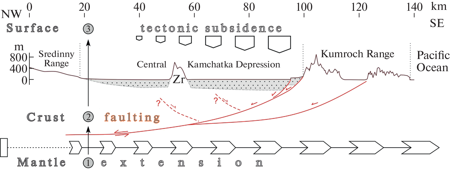 - Kozhurin A., Zelenin E. (2017). An extending island arc: the case of Kamchatka. Tectonophysics. Vol. 706. P. 91–102. https://doi.org/10.1016/j.tecto.2017.04.001
