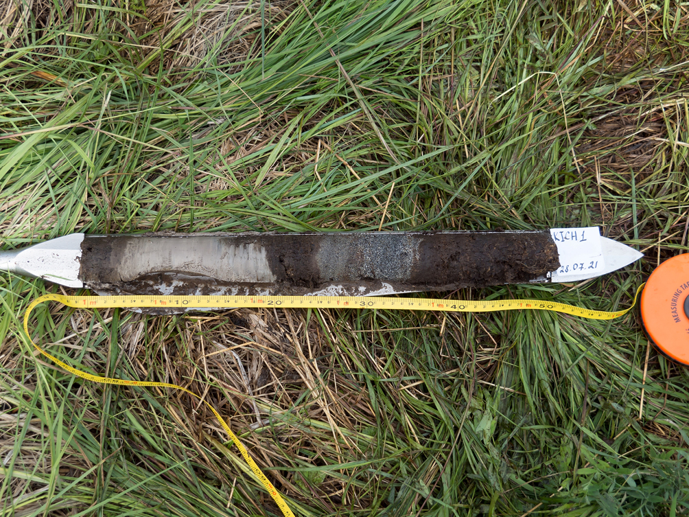 Бурение проводилось ручным буром марки Eijkelkamp пробоотборником русский торфяной бур, который имеет длину 50 см и ширину 5 см. Керны длиной по 0.5 м упаковывались на месте (рис. 3), а отбор образцов на СП и ¹⁴C анализы, анализы пеплов и потерь при прокаливании (ППП) проводился в лаборатории.