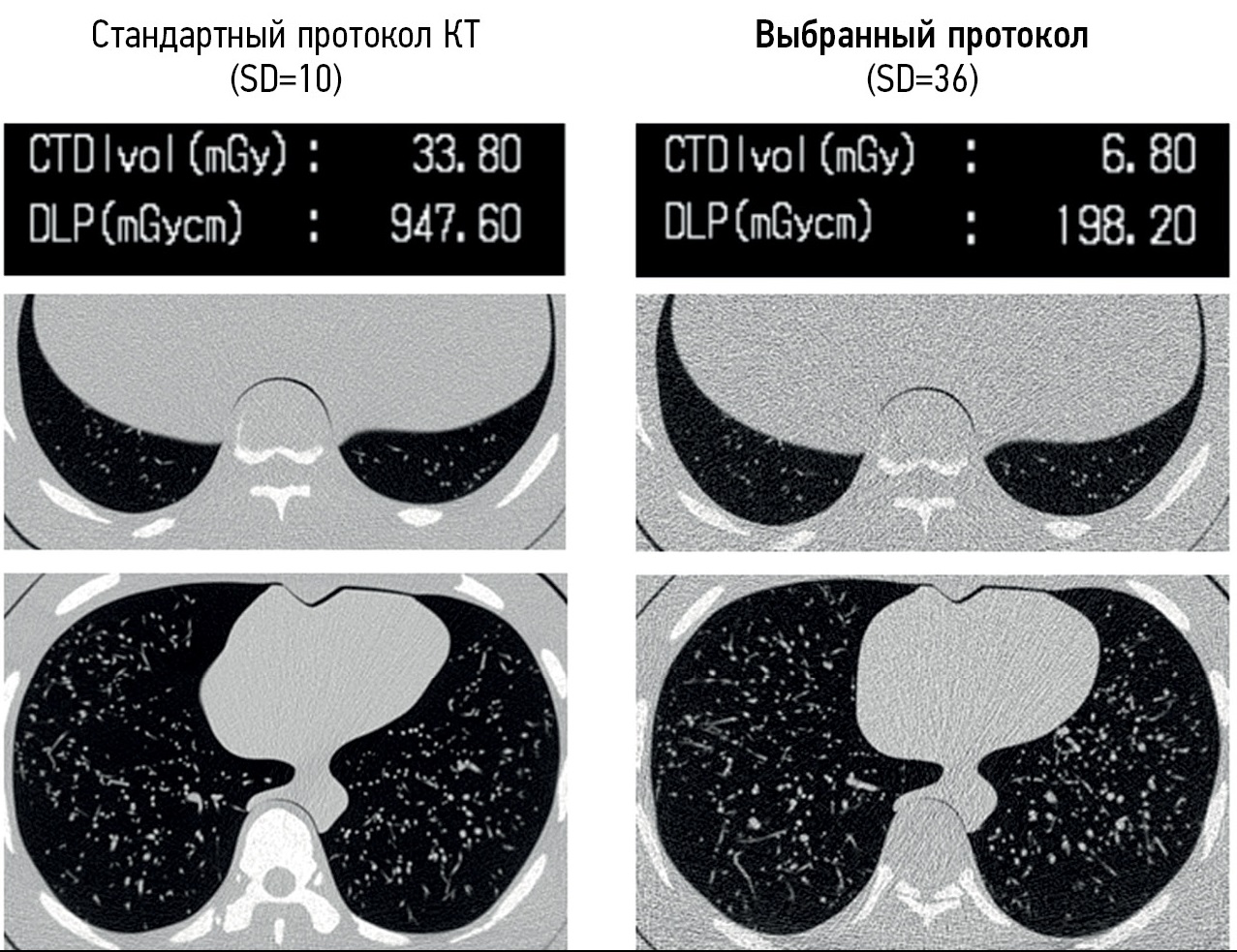 CONCLUSION: We present techniques to reduce radiation exposure during chest computed tomography and preserve high-quality diagnostic images potentially sufficient for reliable detection of COVID-19 signs. Reducing radiation dose is a valid approach to obtain relevant diagnostic information, preserving opportunities for the introduction of advanced computational analysis technologies in clinical practice.