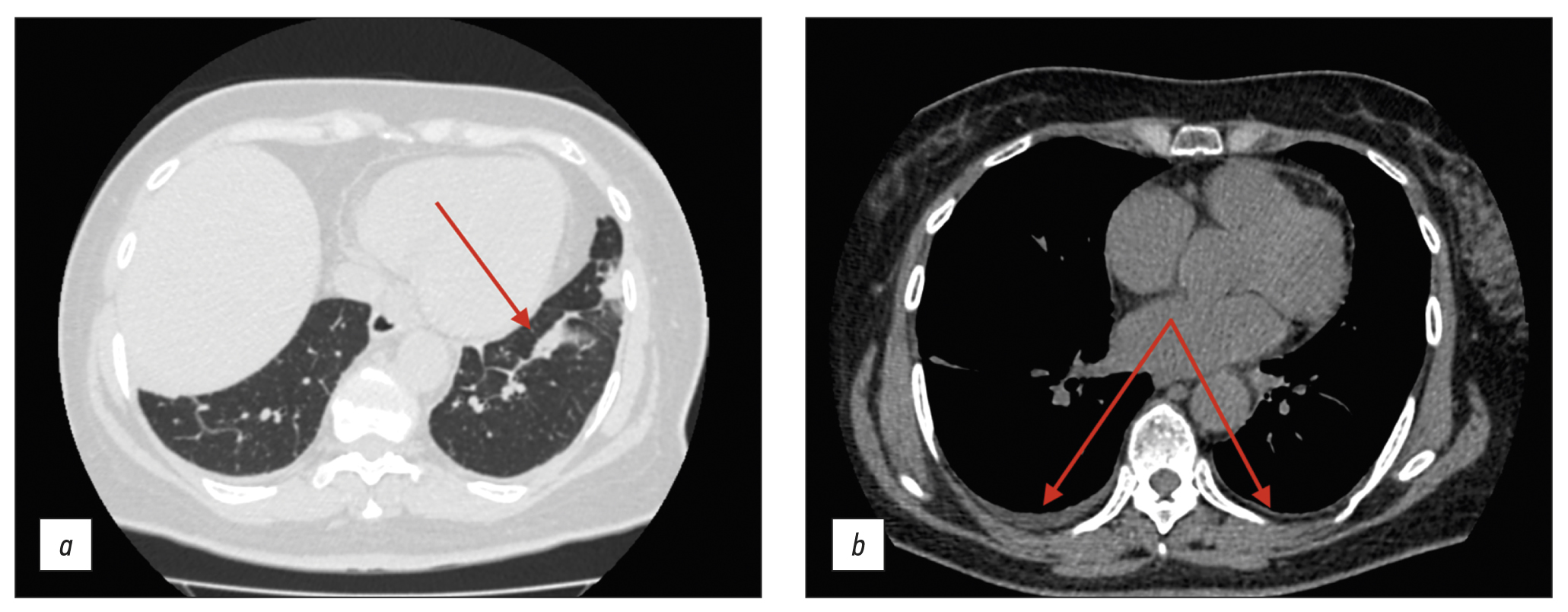 A 61-year-old woman presented to the hospital with a nocturnal fever up to 39.5°С, accompanied by chest and scapular pain, and substantial weight loss (10 kg over 3 months). Lymphoproliferative and infectious diseases were excluded. Baseline colonoscopy had revealed erosions in the colonic mucosa, leading to a preliminary diagnosis of ulcerative colitis, and subsequently, the patient was admitted to the gastroenterology department. Follow-up colonoscopy had excluded this diagnosis. Additional imaging via chest and abdominal computed tomography scan revealed wall thickening of aorta and its branches with subtle contrast enhancement.