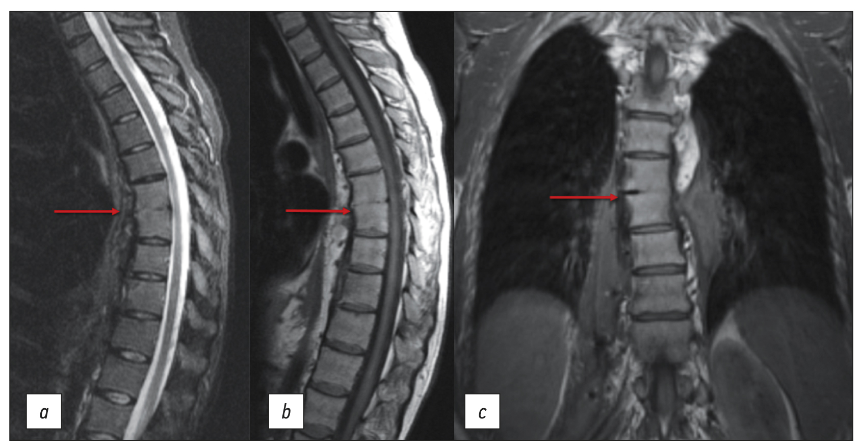 В работе представлен клинический случай вторично развившегося спондилита позвонков ТhVII–ТhVIII вследствие пищеводного свища. При первичной диагностике спондилит связали со спинальной анестезией, которая проводилась за 6 месяцев до начала заболевания, так как имел место свищевой дефект на коже в поясничной области. По этому поводу трижды проводились оперативные вмешательства в хирургическом стационаре по месту жительства. Данные эндоскопического исследования и жалобы пациентки на связь между приёмами пищи, появлением болей и характером отделяемого из свища не были приняты врачами изначально во внимание. С помощью дополнительного обследования, включающего компьютерную томографию пищевода с пероральным контрастированием и компьютерно-томографическую фистулографию, был установлен основной диагноз «Свищ пищевода», а спондилит грудного отдела позвоночника оказался лишь вторичным осложнением.