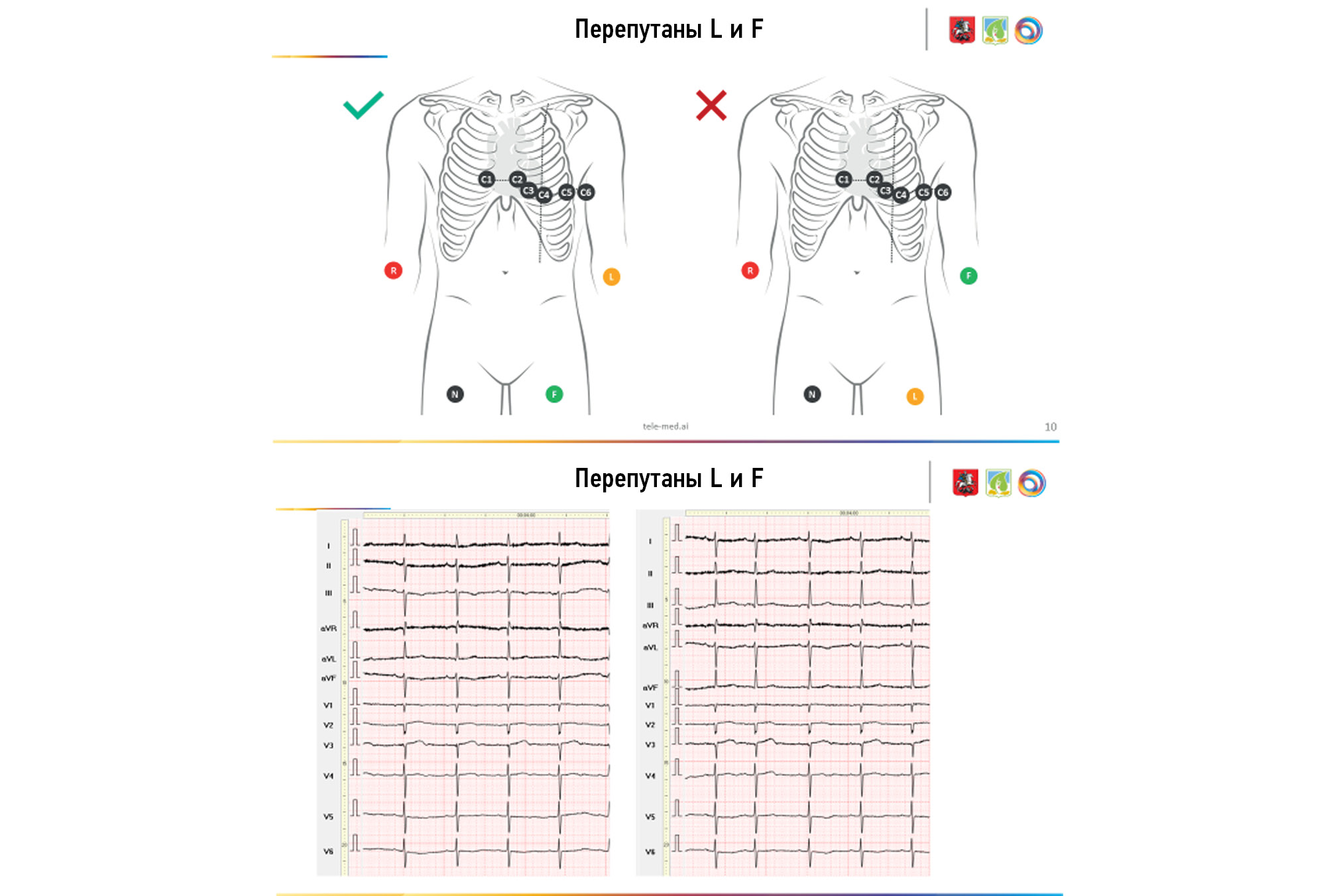 BACKGROUND: Electrocardiography is one of the simplest, most widely used, inexpensive, and informative methods in functional diagnostics; yet, if performed poorly, its diagnostic value is sharply reduced. Several attempts were made to systematize errors and deviations in electrode application, but all concerned the most common options (rearrangement of red and yellow electrodes, yellow and green electrodes, and chest electrodes — above or below the standard scheme).