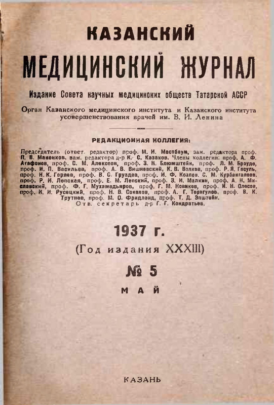 In the literature available to us, we could find only one work (Prof. MO Friedland "Questions of Tuberculosis", 1932), devoted to the issue of the spread of osteoarticular (c.-c. TBK) and glandular tuberculosis in the Tatar Republic. In this work, prof. Friedland gives comparative statistics on the number of cases of K.-s. TBK based on the materials of the Ukrainian tube. Institute with the data obtained by him as a result of the survey of the Menzelinsky region of the TASSR.