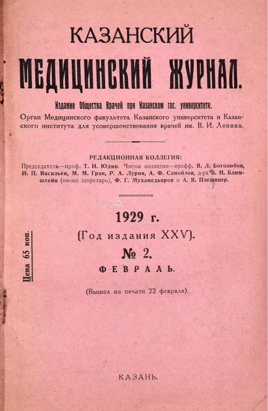 13 февраля с. г. в заседании О-ва врачей при Каз. университете была принята следующая резолюция по поводу последних выборов в Академию наук; „Взволновавшие всю страну события, связанные с выборами новых академиков во Всесоюзную Академию Наук, не прошли мимо широких кругов членов Общества врачей при Казанском университете. Общество врачей полагает, что результаты баллотировки пленума Академии, при которой оказались неизбранными товарищи: Фриче, Деборин и Лукин, избранные секциями специалистов гуманитарных наук—свидетельствуют, несомненно, о том, что не их научные заслуги, а обстоятельства неакадемического характера, имевшие место в пленуме, привели к неожиданным результатам, оставившим вышеупомянутых товарищей вне стен Всесоюзной Академии Наук.
