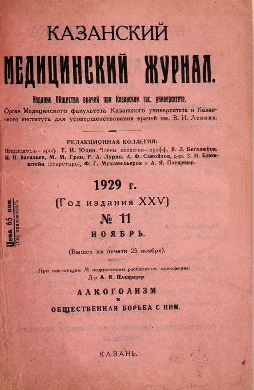 Zalkind E. M. Dynamics of leukocytosis in some nervous diseases and suffering of the individual (from the clinic of Professor AI Yushchenko). Rostov-on-Don, 1929. Proceedings of the North Caucasian Association of Scientific Research Institutes “. No. 66. Price 3 rubles