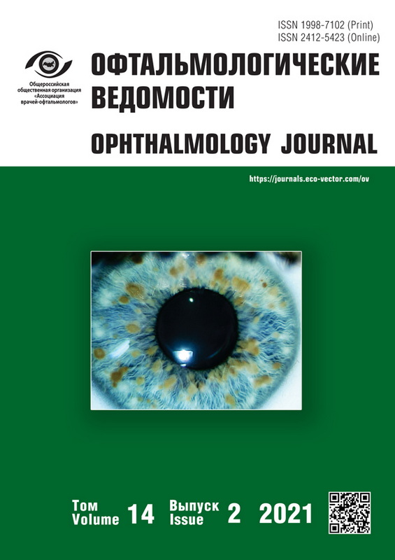 MATERIALS AND METHODS. 13 patients (13 eyes) after intravitreal ranibizumab therapy for 1 year (from 6 to 8 injections with an interval of 1.5 to 2 months). However, in all patients, there was a recurrence of the exudative activity of the process. Aflibercept treatment method consisted of 3 monthly “loading” intravitreal injections with follow-up period of 4 months.