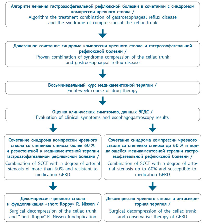 Рис. 1. Алгоритм лечения гастроэзофагеальной рефлюксной болезни в сочетании с синдромом компрессии чревного ствола