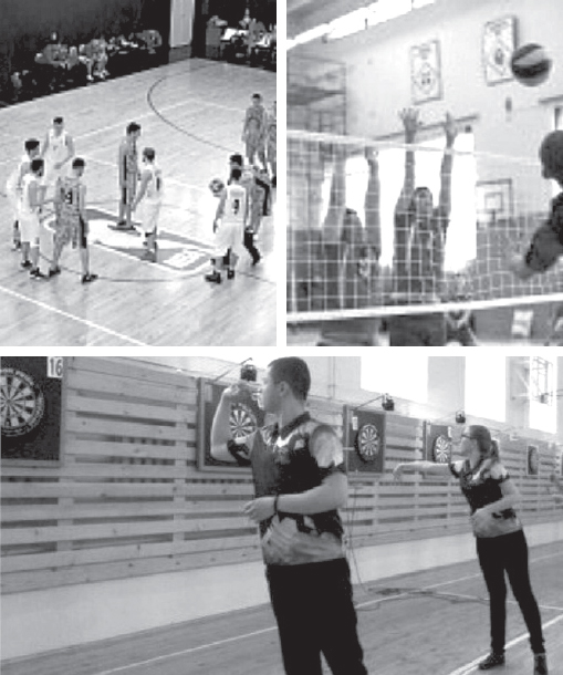 Fig. 1. Stage II of the Sports Festival: Voronezh, basketball (2018), St. Petersburg, volleyball (2016), and the Final Stage of the Sports Festival Izhevsk, darts (2017)