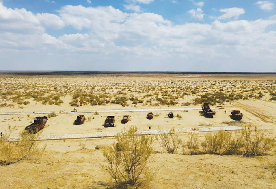 Рис. 1. Пустыня Аралкум, образованная на дне бывшего Аральского моря, вблизи г. Муйнак, Узбекистан. Фотография из личного архива авторов