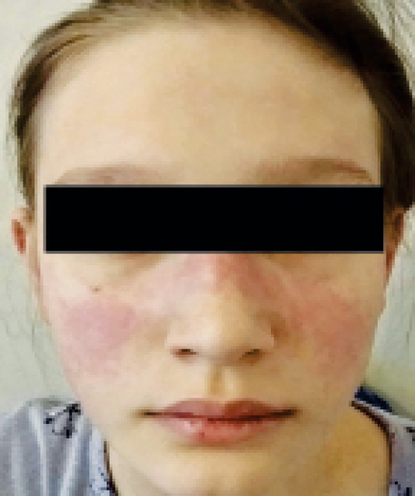Рис. 1. Пациентка 13 лет. Симптом бабочки (характерный для системной красной волчанки)